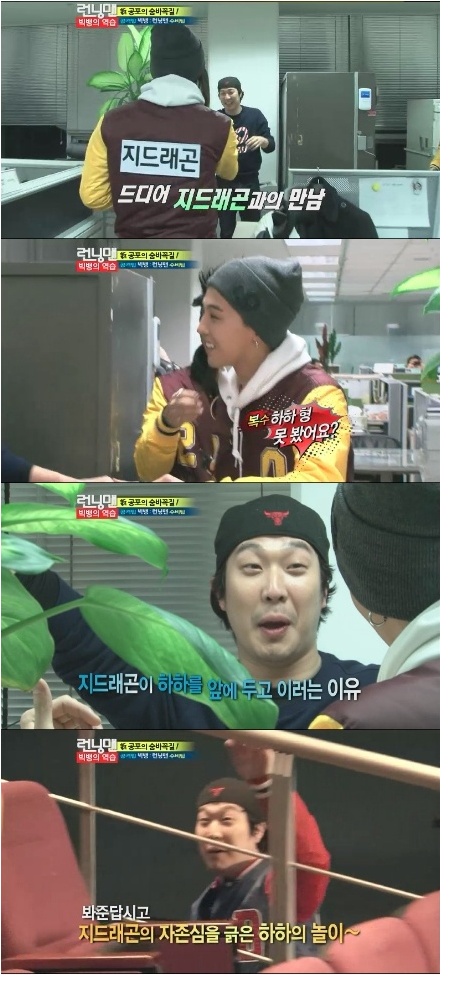 저번주엔 하하가 지드래곤에게 투명인간놀이하더니 오늘은 지드래곤의 복수가 시작...