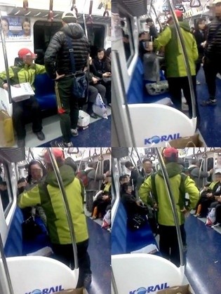 영상 속에서 남성이 실수로 옆에 앉은 한 여성의 발을 차자 여성이 폭언을 하기 시작했다. 그리고 여성이 폭언을 하자 남성도 똑같은 폭언으로 응수해 지하철 안은 아수라장이 되고 말았다.