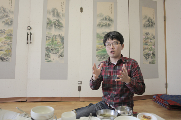 여기는 건장한 아저씨 두분이 계량한복(?)을 입고 상을 들고 방으로 들어오십니당