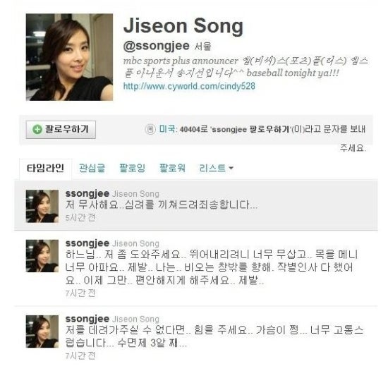 원문링크 : [송지선]송지선 싸이, 트위터 글 lko