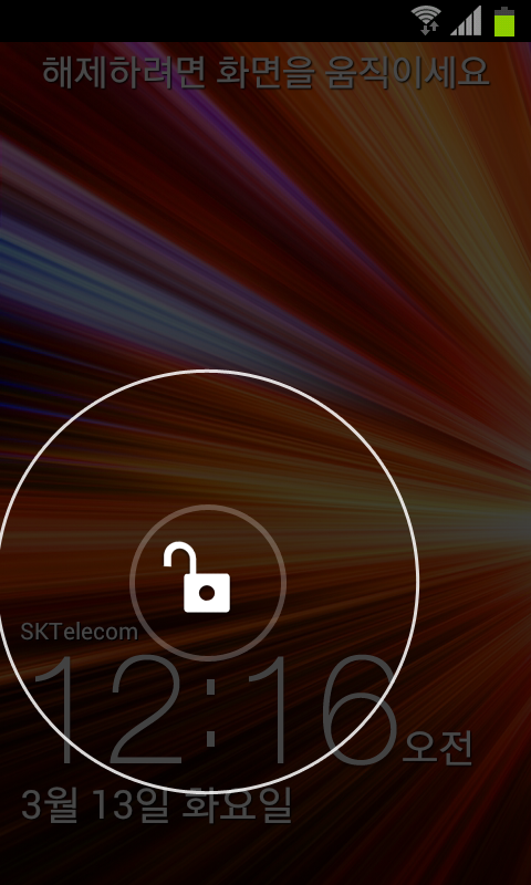 잠금 화면 역시 기존의 갤럭시노트 등에서 선보였던 그 방식입니다. 그래도 아이스크림 샌드위치 분위가 물씬!