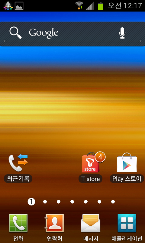 홈화면이야 터치위즈가 적용되어 눈여겨 보지 않으면 진저브레드 시절 갤투와 동일합니다. 군데군데 디테일이 다르죠?