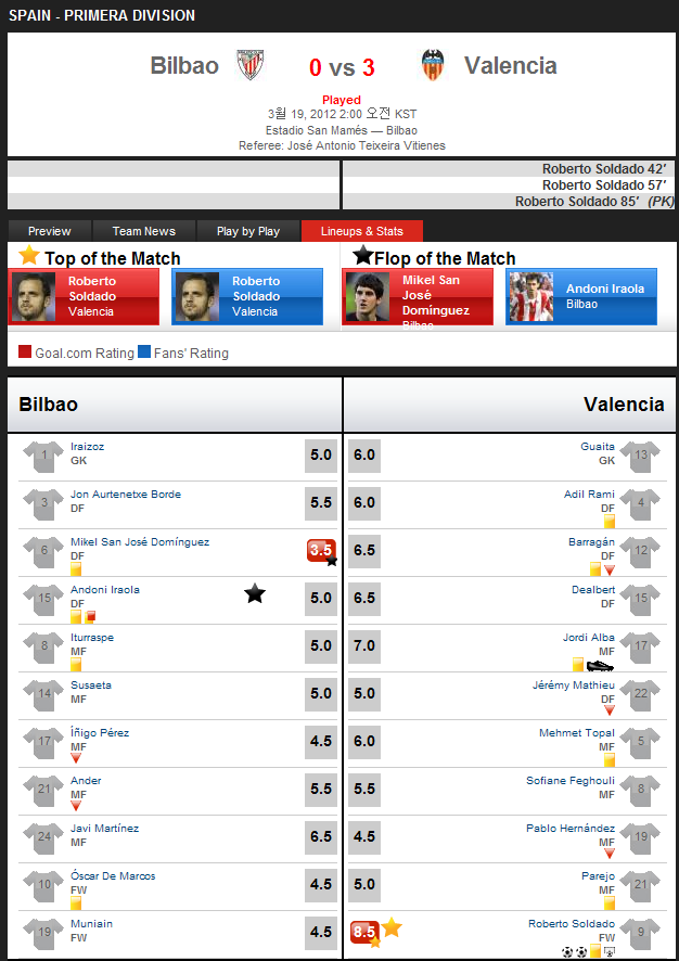 출처원문링크 : 빌바오VS발렌시아 솔다도 헤트트릭 골장면하일라이트 프리메라리가